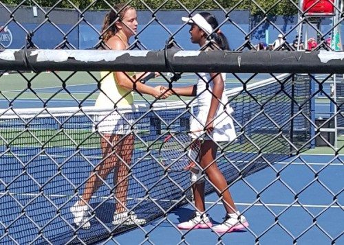 The early stages of the second set seemed a painful endeavor for Subhash. She struggled to regain momentum, fell behind. With two breaks and then holding on to her serve, Hauger notched up a 4-0 lead. But it was becoming apparent that Subhash was beginning to find her flow on court again, her intelligent serve and volleys sharpened. Impeccable drop shots that turned to winners suggested why she is ranked no. 1 in the US in both the under-14 and u-16 girls’ categories, going into the US Open.