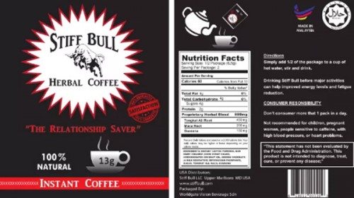 According to Stiff Bull website, “the coffee contains a propriety blend of ingredients such as – Tongkat Ali, maca root, and guarana. These herbs grow wild in the jungles of Malaysia and have been used for centuries by the people of Asia and South America to greatly improve sexual health, libido, and overall wellness.â€