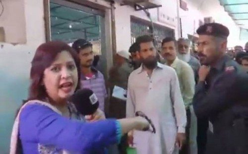 SSP Central Muqadas Hyder told the Pakistani media, “Gulbahar police have registered a case against the FC personnel over charges of conducting aerial firing and assaulting modesty of the female reporter of K-21 TV channel by slapping her.”