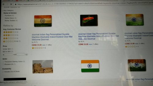 Amazon listing of the Indian flag themed doormat read “Personal Durable Machine-Washable Indoor/Outdoor.†The mat was sold via Amazon marketplace by a vendor going by the name XLYL.
