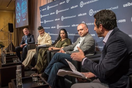 (4) Future of US-India Technology Partnership featuring the Chief Minister of Andhra Pradesh Chandrababu Naidu and IT Secretary Aruna Sundararajan, alongside tech innovators Dheeraj Pandey, CEO of Nutanix, and USIBC Chairman and Cisco Executive Chairman, John Chambers. The panel was moderated by CNBC’s senior technology reporter, Ari Levy.
