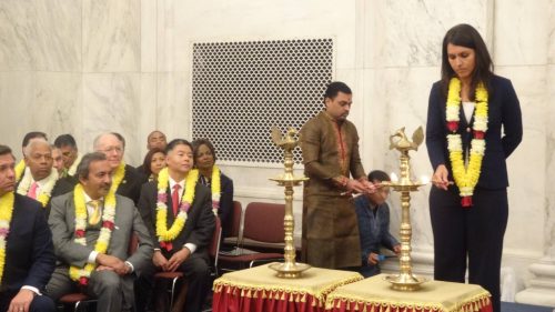 Krishnamoorthi, who took the oath of office on the Bhagavad Gita, had introduced a Resolution in the House of Representatives last month recognizing the religious and historical significance of Diwali. The resolution was co-sponsored by his Indian-American colleagues in Congress: Bera; Ro Khanna (Democrat – California); and Pramila Jayapal (Democrat – Washington); as well as Gabbard and Joe Crowley (Democrat-New York).