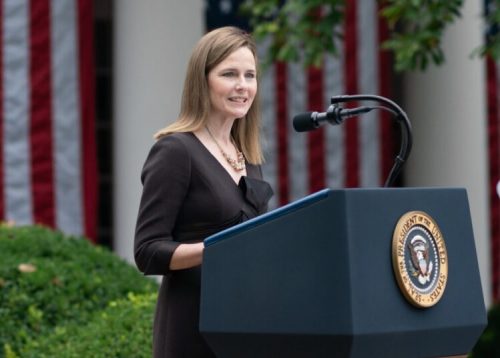 “Justice Barrett made clear she will issue rulings based solely upon a faithful reading of the law and the Constitution as written not legislate from the bench,” Trump said at the ceremony just an hour after the Senate vote.