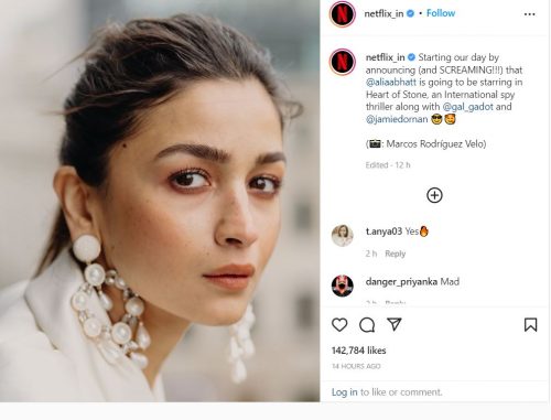 Netflix India shared the announcement on its official Instagram account: “Starting our day by announcing (and screaming) that Alia Bhatt is going to be in Heart of Stone, an International spy thriller along with @gal_gadot and @jamiedornanâ€