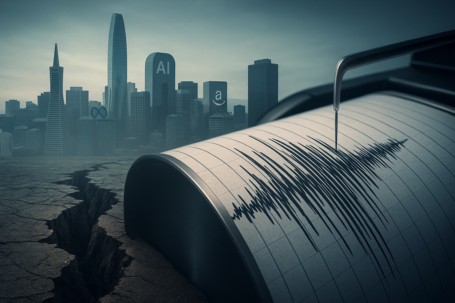 Earthquakes occur when deep fault lines accumulate pressure until the earth can no longer contain the strain. The surface looks calm, but beneath it, opposing forces grind together until a sudden rupture reshapes everything above. That same dynamic is now shaping the AI economy, where hype and capital race ahead of fundamentals. The tremors are already visible—and, ironically, we saw the same thing twenty-five years ago. Now, history is about to repeat itself.