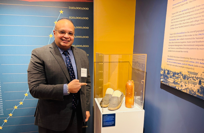 In a moving nod to civic participation and representation, the campaign shoes worn by Naperville’s first Indian American and Muslim councilman Ashfaq Syed will be archived as part of the America 250 commemoration — symbolizing the evolving story of American democracy.