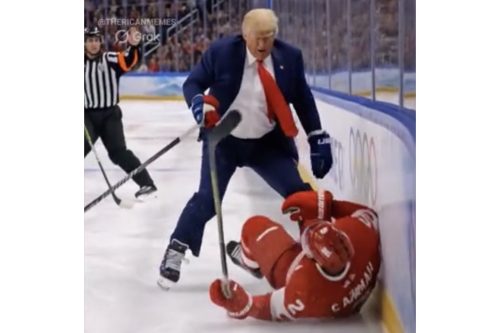 But unmindful of the controversy, Trump posted another AI-generated video of himself playing hockey in a suit and red tie, throwing one Canadian player down on the ice and beating up another.